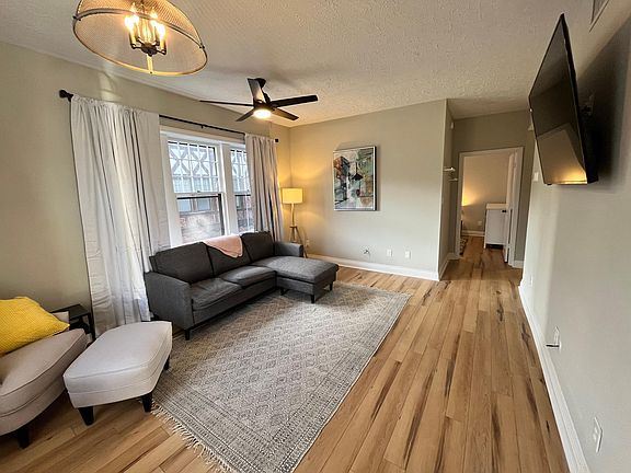 This charming one bedroom / one bathroom condo is fully furnished with all kitchen appliances, washer/dryer, and a 58" TV. Other items include linens, silver-ware, pots and pans, dishes, etc...More than likely all you will need is a wardrobe! The recently renovated second story condo is in the heart of the Tree Streets and is located between East Tennessee State University and Downtown Johnson City. The historic building is known as Montrose Court.