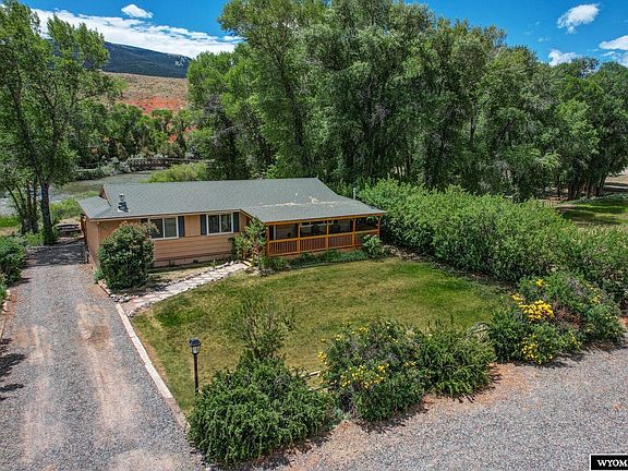 Fly fish the Wind River from your back door! Rare opportunity to own a 4-bed, 2.5-bath riverfront home (1 non-conforming bedroom) in the heart of Dubois, bordering the town park with private gate access to the Wind River. Zoned for residential and commercial use, the home is currently a successful short-term rental on Airbnb/VRBO with an 6.3% cap rate (financials available with signed NDA). Recently remodeled and freshly painted, this home features a covered front patio, rear patio with pergola, and four walkout sliding doors—including direct access from the master. The fully finished walkout basement, two propane fireplaces, and firepit area offer comfort and versatility. The property includes a storage shed and is within walking distance to shops, restaurants, and groceries. Buyers have the option to purchase fully furnished for a turnkey residence or STR (pending Town of Dubois permit approval). Stunning river and mountain views complete this unique property.