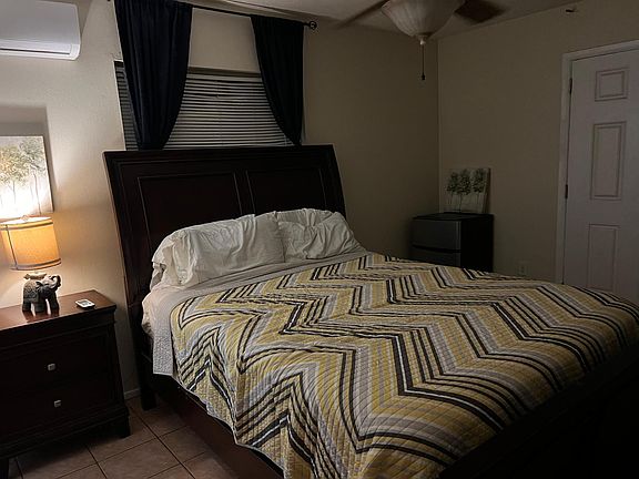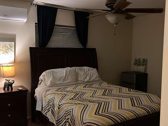 Large room, furnished with private patio and independent entrance, AC and Heat separated from the main house, 1 Parking space in drive way.