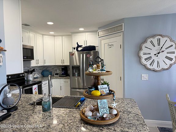 Direct Riverfront Rental - Beautifully updated and fully furnished 1st floor riverfront condo. From your screened-in patio, enjoy spectacular direct views of the Indian River and watch as rockets soar into the sky an unforgettable sight unique to the Space Coast. Inside, the unit is completely updated with granite countertops, luxury vinyl flooring, and stylish furnishings. A washer and dryer are included, making this condo move-in ready and worry-free. The screened patio also features a private storage room for added convenience. The community offers a variety of amenities designed for relaxation and recreation including a pool and spa, Gazebo and picnic area for outdoor gatherings along with a Fishing pier for riverfront leisure. There is also room for Boat and trailer storage available for residents. This rental offers the perfect blend of comfort and coastal charm. Convenient to shopping and easy access to the Space Center, Beaches & International Airport.