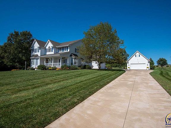 Beautiful updated home on 6 ac in Washburn Rural. Awesome covered patio & pool area w/BI-BBQ. Beautiful landscaping w/raised (versa block) rose bed area. Huge kit w/brkfst bar & dinette. Soaring ceilings in great room w/lots of windows,remodeled master bath, Concrete siding, 2 car attached & 2 car detached garage, garden shed. Bsmt has bedroom, Bath, media room & rec room. See list of amenities & what will stay.