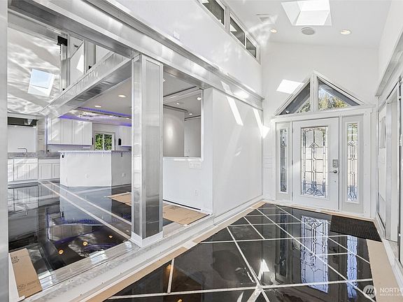 Rare Western Exposure Lake Tapps Waterfront Retreat! Discover one-of-a kind living on nearly 1/2 acre of fully-fenced privacy, boasting 70 feet of coveted low-bank waterfront. This gem offers an entertainer’s deck w/ sleek full cable metal railing. Endless upgrades & luxury throughout-Viking appliances, abundant natural light/skylights, tinted soundproof windows, ceiling speakers & fully-equipped 2nd kitchen on the lower level—perfect for multigenerational living/guests or ADU income. Detached heated garage, 2 electric gates & ample parking/hookup for RVs, boats & toys. Waterfront cabana/boathouse with kitchenette, all Trex dock & beach front. Access to private park & boat launch. Start soaking in beautiful sunsets & your dream lake life!