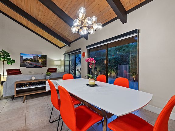 With three bedrooms (including one conveniently located downstairs) and two modern, high-end bathrooms, this updated home provides everything you need for a comfortable extended stay. The spacious, open floor plan boasts vaulted, beamed ceilings that add character and warmth, while the seamless flow between the indoor and outdoor spaces creates a true sense of relaxation. Step outside to your private patio oasis, complete with a retractable awning and night-lit landscape, where you can unwind against the stunning backdrop of the desert mountains perfect for savoring the serenity of the evenings or soaking in the warm desert days.