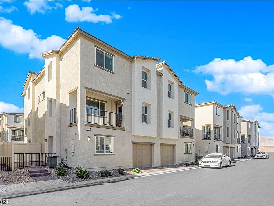 Welcome to this charming & picturesque 3-story townhome situated in the Watercolor gated community w/partial MOUNTAIN VIEWS just outside your balcony! This home features 3 BEDROOMS/3 BATHS, an OPEN FLOOR PLAN w/natural light that creates a warm & bright ambiance. The kitchen boasts BEAUTIFUL WHITE CABINETS, GRANITE COUNTERTOPS & STAINLESS-STEEL APPLIANCES. The family room & primary bedroom have been UPDATED WITH CEILING FANS providing comfort for those hot summer days/nights. ADDITIONAL HIGHLIGHT is the WATER SOFTENER SYSTEM! The community offers resort style amenities: POOLS/SPAS, KIDS SPLASH PAD, POOL BATHROOMS & SHOWERS, FULL BASKETBALL COURT, DOG PARKS, WALKING TRAILS, KIDS PLAY AREAS, PICNIC/BBQ AREA & MORE! HOA INCLUDES COX HIGHSPEED GIGABLAST INTERNET AND CABLE! This property is conveniently located just a short drive away from the VA Hospital, Aliante Casino and Hotel, grocery stores, restaurants & MORE! ***FURNITURE IN FAMILY & DINING ROOM INCLUDED WITH SALE (EXCEPT TV)***