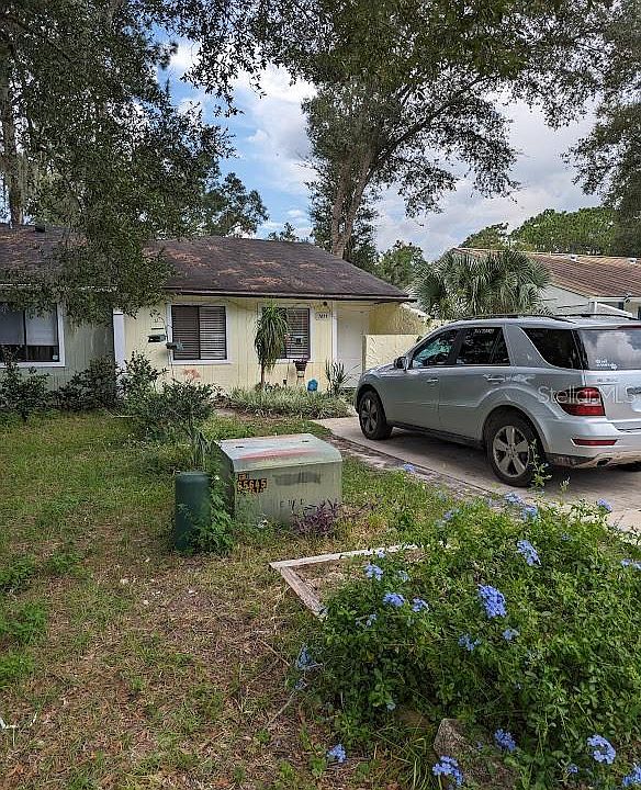 Centrally located with easy access to I-75, UF Health, VA, North Florida Regional & Santa Fe this remodeled 2 bedroom 2 bath unit is the west side of a duplex. Roof was done in 2017 along with Hot Water Heater. Plus French doors were added leading to 15' 6" x 22' 9' Screened in patio, plus a 12 x 8 covered lanai with laundry closet. 50 amp electric box also added. New Tub and tile installed in Hall bathroom. 2018 Insulation was blown into the Attic. 2022 New HVAC installed. 2023 Tub, wall tile and toilet replaced in master bath. Cat door leads to the screened in porch. Still plenty of room to putter around the yard, with a site built shed. Property is completely fenced with mural painted all the way around. Orange tree in the corner loaded with fruit. Recently painted makes this move in ready.