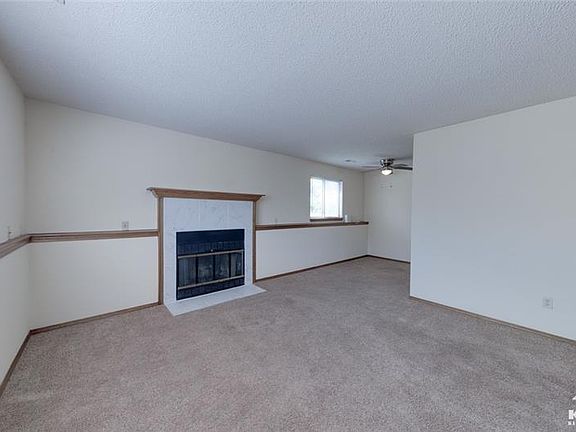 Decorative fireplaceDining spaceComfortable bedroomsCarpet and vinyl flooringLarge mirrored closetCeiling fanWindow blinds