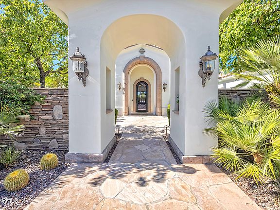 Welcome to Paradise Valley where luxury living reaches new heights. This exceptional estate offers a remarkable blend of elegance, comfort & modern amenities. Boasting a main house with 5,937 square feet of meticulously designed living space, including 4 bedrooms. 4.5 baths and 2 offices, along with a 704 square feet guest house, this property truly embodies the epitome of refined living. Step inside the main house and be greeted by a grand entrance that sets the tone for the entire residence. The spacious floor plan encompasses large open spaces. The master suite is a true sanctuary, featuring a huge master closet and a luxurious bathroom. Indulge in heated floors, double vanities, steam shower, towel warmer and the ultimate in convenience with 2 water closets equipped with Toto toilets. No expense was spared in the remodel and improvements of this estate, with over $1,300,000 invested to enhance its beauty and functionality. The gourmet kitchen cannot be beat, with gorgeous granite countertops, huge island, double wall ovens, a warming drawer and pot filler. The newer roofs provides peace of mind, while the Venetian plaster walls and newer wood floors exude timeless sophistication. The newer HVAC systems ensure optimal comfort throughout the year, and the ground-mounted solar panels significantly reduce electric bills, making this home as energy-efficient as it is luxurious. Plus you can feel safe with fire sprinklers throughout the home. Entertaining is a breeze with the abundance of amenities this estate has to offer. The huge covered patio, with its own misting system, invites you to relax and enjoy the breathtaking views of the surrounding landscape. Take a dip in the sparkling pool or unwind in the jacuzzi after a long day. The barbecues area is perfect for hosting outdoor gatherings, while the putting green allows you to practice your golf skills at your leisure. For a moment of tranquility, retreat to the gazebo and revel in the serenity of your private oasis. Inside and out, every detail has been carefully considered. The property features synthetic grass throughout, providing a lush and low-maintenance landscape all year round. With speakers in every room and patio, you can enjoy your favorite music wherever you go, creating the perfect ambiance for any occasion.