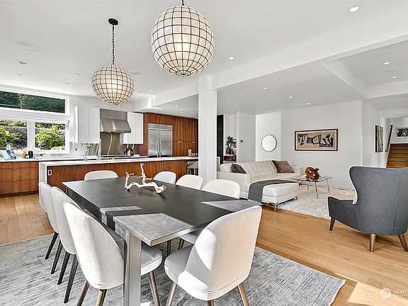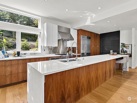 Modern living at its finest on beautiful Mercer Island. Masterfully crafted by Method Homes in 2014, this modern masterpiece offers you the ideal opportunity to embrace the beauty of the Pacific Northwest. Located just minutes from parks and beaches, it also boasts the convenience of proximity to shopping and social amenities, including the south-end shopping district, the Mercer Island Beach Club, and the Mercer Island Country Club. Get lost exploring over 3,330 sq/ft of this SMART home, featuring 5 bedrooms, 4 bathrooms, and an open concept formal living area with gas fireplace, and a gourmet chefs' kitchen with high end appliances. Enjoy one of the three decks, while having peek-a-boo views of the lake. Simply don't miss this one!