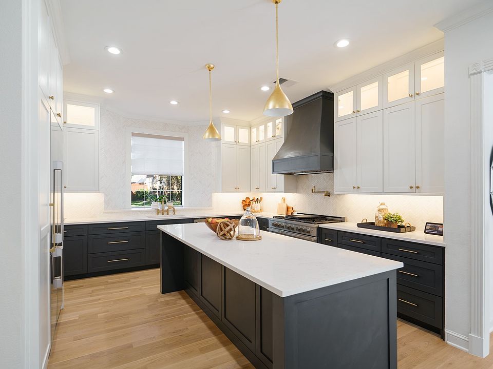 From the spacious entryway of this former model home, you see exquisite custom molding and soaring ceilings. At the heart is a reimagined chef’s kitchen featuring custom cabinetry, an oversized island, high-end Dacor appliances, and a gorgeous gas stove with pot filler. The kitchen opens to a bright, airy living space with soaring ceilings, dramatic windows, and an abundance of natural light. The tranquil primary suite is a true retreat, offering tall windows, high ceilings, generous space, and a luxurious new bath that includes dual sinks, a soaking tub, frameless glass shower and a spacious walk-in closet. New lighting selections throughout elevate the entire home. A custom-built bar with wine cooler and pass-through windows makes indoor and outdoor entertaining easy and elegant. The canvas canopy covered patio lets you stay relaxed while overlooking a generous lap pool with new pump and heater. Additional highlights include a spacious 3-car garage with built-in cabinetry, built-in office shelves and generous storage closets both downstairs and up.