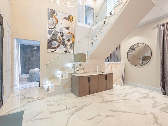 Welcome to this stunning executive home, designed for luxury living and resort-style entertaining, nestled in the prestigious Kings Ridge Manor.This home is a true masterpiece of design, technology, and tranquility. Every inch is carefully curated to elevate daily living from the custom indoor features to the resort-inspired outdoor sanctuary. Step into the grand foyer adorned with large-format porcelain tile, a striking six-light chandelier, a floating tempered glass staircase with illuminated step lighting.The chef’s kitchen is a showpiece with quartz countertops, porcelain tile floors, custom backsplash, built-in Dacor fridge, double ovens, and a Jennair 9-burner commercial range with oversized oven, perfectly positioned to overlook the main living area for open-concept entertaining. The secluded primary suite is a private retreat featuring shiplap ceilings, custom wood beams, porcelain tile flooring, a custom accent wall, and a sliding door to the pool area. The spa-inspired ensuite bath features a built-in 6-person traditional cedar sauna, a dramatic claw-foot garden tub, vessel sinks, and a massive walk-in closet with custom built-ins. A game room with hand-scraped hardwood flooring, three screens, and surround sound.A luxury home theatre with a 200 inch screen, professional Epson projector, custom curtains, theater lighting and carpet, and a high-end stereo system with integrated smart controls.You’ll feel like you’re on vacation every day in this elegant outdoor retreat featuring a PebbleTec pool with a swim shelf, built-in traditional sauna, and a 4-person infrared sauna. Relax beneath a wood-framed gazebo with lighting, take a rinse in the outdoor shower, or admire the details of dark tigerwood decking paired with marble and stone tile. Large palm trees with drip irrigation add a tropical flair, creating a truly resort-style atmosphere perfect for entertaining or unwinding. Relax on the Upstairs balcony overlooking pool. Temperature controlled wine room.