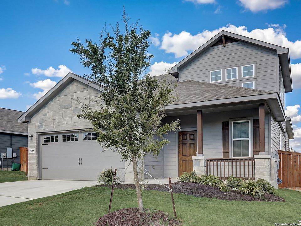 VA assumable loan with 2.75% may be available. Immaculate Home in Homestead, Schertz! Completed in 2021 and boasting a spacious 2,321 square feet, this near-new residence is an emblem of contemporary living combined with the peace and tranquility of the Texas countryside. With 3 generous bedrooms and 3 pristine bathrooms, this property is the epitome of comfort and style. The grandeur starts with the soaring high ceilings in the living room, bathed in natural light and leading the eye to the intricate ceramic tile work that mimics the timeless elegance of hardwood. The open floor plan invites gatherings and entertainment, flowing seamlessly into the gourmet kitchen and dining area. Step outside to the covered patio, fully wired for your TV setup - perfect for weekend game days or movie nights under the Texas sky. Located in the serene Homestead neighborhood of Schertz, TX, future homeowners will find themselves in a peaceful enclave, yet conveniently close to both San Antonio and Austin. Those associated with JBSA Randolph will appreciate the proximity, making daily commutes a breeze. For those who relish community amenities, Homestead offers unparalleled features: A resort-style pool, splash pad, a state-of-the-art fitness facility, complete with on-site classes, and four diverse walking, running, and biking trails that crisscross this picturesque community. There is also an open air pavilion, a dedicated play area featuring natural playscape and top-tier Kompan equipment. Don't miss out on this rare opportunity to own a slice of modern luxury in a community that offers both convenience and nature's beauty. Schedule a personal tour today!