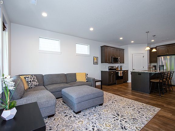 This single-family home has a very livable floor plan with high ceilings, open concept great room. Granite counter tops, large island & tile backsplash. Walk in pantry. Custom window coverings. Sunny interior natural light; tons of windows w/ views of the landscaped back yard. Blueberries and fruit tree grafted w/ a variety of apples. Upgraded (partially covered) patio for an outside living area and fenced backyard access. The spacious primary bedroom upstairs w/ two walk-in closets & wall-to-wall carpet. More storage w/ two additional walk-in closets. Upstairs washer/dryer utility room for convenience. Gas forced air heating plus AC. Fire suppression interior sprinkler system. Two car garage w/ oversized garage door & high ceilings. The community of Pioneer East is conveniently located near shopping, restaurants in the historic downtown area of Ridgefield. Home to the Ridgefield wildlife refuge and the arts district, Ridgefield is fast growing city known for its schools, the Bluegrass Bird fest music festival and Lewis and Clark history. Make an appointment today to see this nice home and become a part of Ridgefield experience.