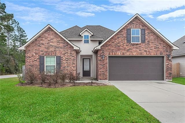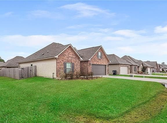 5 yr young 3 BD 2 full bath DLSD energy efficient home. 10' ceilings. Tile floor in living room, foyer, kitchen and baths. 3cm Granite counter tops in the kitchen and baths. Birch cabinets. SS: stove, refrigerator, dishwasher, microwave. LG driveway. Two car garage with remote door. Location makes commuting easy. 5 min to I-12, shopping Wal-Mart, etc. Corner Lot. Backyard is fenced and has a covered patio. Lacrosse B III model open floorplan and computer desk built in. Flood Zone C. City water and sewage.
