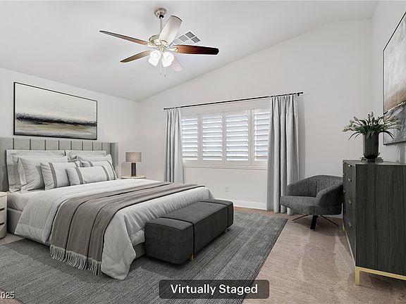 25K PRICE REDUCTION!! Stunning upgraded NW home on a large corner cul-de-sac lot with pool and spa! Interior features include plantation shutters, ceiling fans, overhead canned lighting, custom paint, water softener, R/O system, newer larger ton and higher seer rating AC unit, new water heater, wired alarm system, exterior cameras, built in garage cabinets, GE appliances including large capacity front load washer/dryer and more! The upstairs primary and guest baths were remodeled with custom showers and vanities as well as custom upgraded lighting inside the showers! The exterior boasts upgraded pavers, new paint in 2024, a fully landscaped backyard oasis with gorgeous pool/spa, covered patio, mature landscaping and artificial grass. Minutes from shopping, parks, restaurants, Red Rock and Downtown Summerlin!