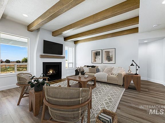 The FOXFIRE MODEL| Blackrock Homes. All new plan featuring 30' deep RV/Boat Bay with 9' x 11' door. Located on larger end homesite w/larger yards area. Apart of the Pinnacle Collection at Skybreak- Enjoy COMMUNITY POOL, pickle ball courts, playground + community dog parks! Upgraded finishes include custom cabinets, all quartz countertops, hardwood (lvp), upgraded trim detail including ceiling beams in living room, SS appliances including built-in 5 burner industrial gas range, built in oven, microwave & dishwasher. Walk-in butler's pantry + tons of additional storage throughout. Light & airy floor plan w/lots of natural light & cozy fireplace. Tile floors in laundry, secondary & primary baths. *photos similar but not of actual home. Actual selections to be RH package.