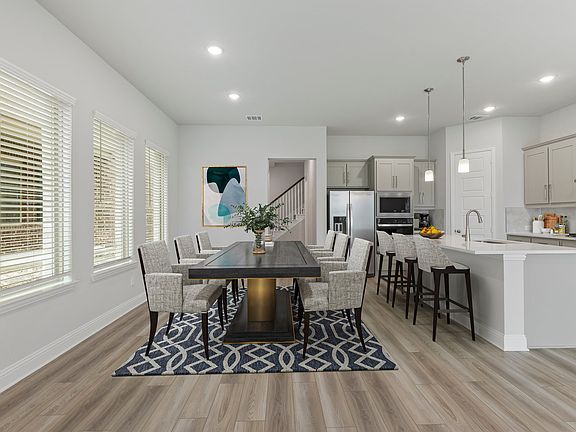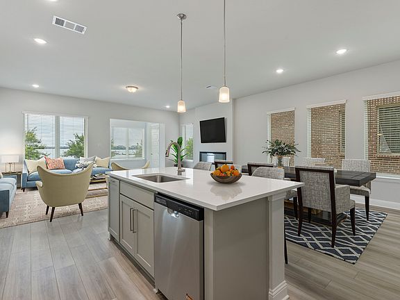 Welcome to your brand new lakefront retreat, offering serene views of Lake Ray Hubbard from the front porch, second-level balcony and multiple windows throughout. This beautifully designed Mattamy Santorini floor plan features four bedrooms, three full bathrooms and an inviting open layout perfect for modern living. The first floor showcases warm, neutral-toned engineered hardwoods and includes a private bedroom with a full bath ideal for guests or a home office. Enjoy a bright and airy living space with multiple windows that bring in natural light and showcase peaceful views of the lake. A modern, wall-mounted linear fireplace adds a warm focal point and the open layout connects seamlessly to the kitchen and dining area ideal for everyday living and casual gatherings. Designed with the home chef in mind, the kitchen is equipped with stainless steel Whirlpool appliances, including a 5-burner gas cooktop, deep stainless sink, refrigerator, lots of cabinet & counter space and a walk-in pantry. Upstairs the luxurious primary suite features a private balcony overlooking the lake and a spa-inspired bathroom with an oversized walk-in shower and large walk-in closet. Two additional bedrooms share a full bathroom and the oversized laundry room complete with built-in cabinets, countertop, washer and dryer adds both convenience and style. Imagine morning coffee on the balcony, evenings on the porch and daily moments surrounded by nature and water views this is truly lakeside living all while having your conveniences close by. Bayside features numerous pocket parks, winding paths, a dog park and a fishing jetty for leisurely afternoons. The surrounding parklands connect to the upcoming Sapphire Bay complex, which will feature shopping, dining and a state-of-the-art marina, as well as future plans for the Sapphire Bay Lagoon. The new Sapphire Bay Marina grants water access and boat rentals, adding to the recreational opportunities.
