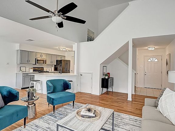 Coming soon! Contact Laurie Flood Team for more info 512-277-7987. You will be delighted immediately upon entry as your eyes are drawn to the soaring living room ceilings and the windows with views to a large yard – ready to enjoy or for your outdoor touches! Unwind in the primary bedroom “treehouse” retreat as it is the only room upstairs and feels “nestled in the trees”. Relax with a soak in the tub at the end of the day in the secluded and updated ensuite bath. This rare and super special floor plan also enables a multigenerational living opportunity with 2 bedroom and full bath downstairs! Love amenities? Just a short walk or bike ride to the neighborhood park featuring a Jr Olympic pool (heated in the winter), a REAL hike and bike trail along the greenbelt – beautifully maintained tennis courts, sand volleyball and more!! Work at Apple and want to walk or bike to work? You can do it from here! And this home is just minutes from HEB, Starbucks (with a drive-through), many restaurants and more. There are some super special things that greatly enhance the value and enjoyment of this property that every buyer will love and should not be overlooked! Check out the AMAZING price! The owners have priced this home so fairly because they have moved on to their next adventure. Contact us to find out more about this rare and very fairly priced property.