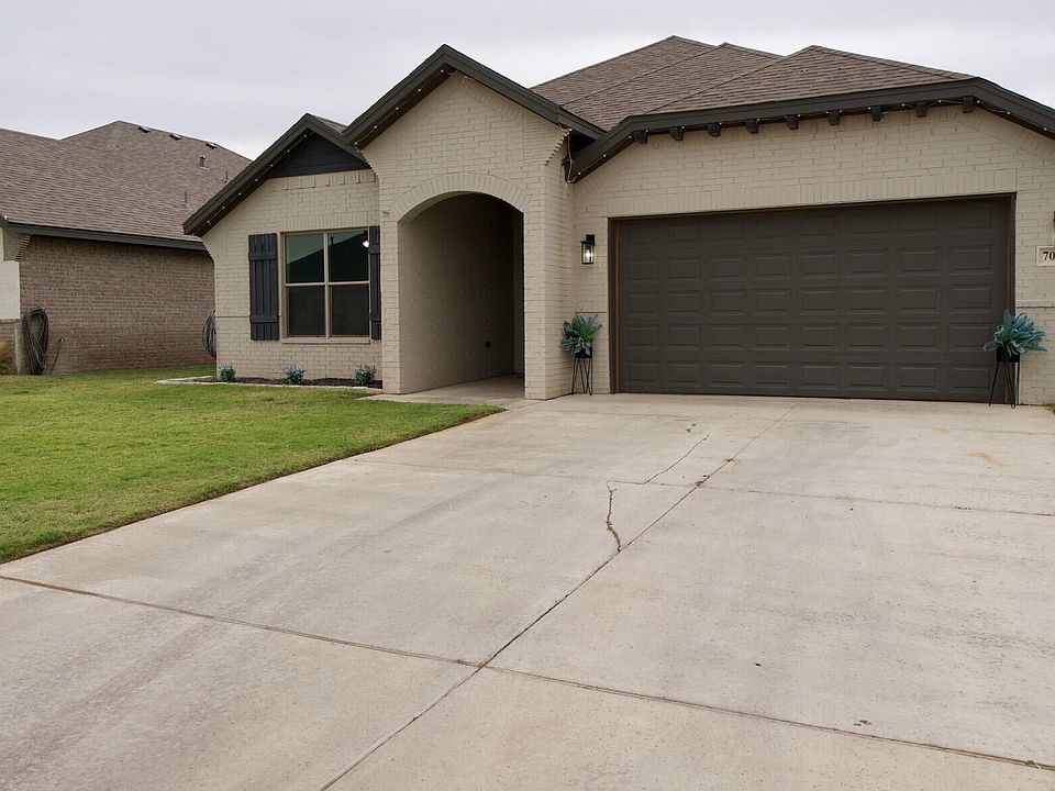 Modern 4-bedroom, 2-bath home in Bushland Springs in Frenship ISD. Fresh paint, new carpet, tall ceilings, arched doorways, and a fireplace with exposed beams create a warm, open feel. The kitchen features granite counters, island seating, and stainless steel appliances. The spacious primary suite offers a soaking tub, dual vanities, and a walk-in closet. Recent updates include paint, carpet, a garage door opener, a garbage disposal, and a nearly new dishwasher. Innovative features include Govee lighting, Eufy security system with cameras & smart lock. Outdoors, enjoy a covered patio, a large backyard with a water filtration hookup, and a 12x16 detached building with power, ready to finish as an office, studio, or gym. Built in 2020, this move-in-ready home blends modern upgrades with smart living in one of Lubbock's most desirable communities. Schedule your showing today! Seller is willing to negotiate a seller credit towards the buyer's closing costs.