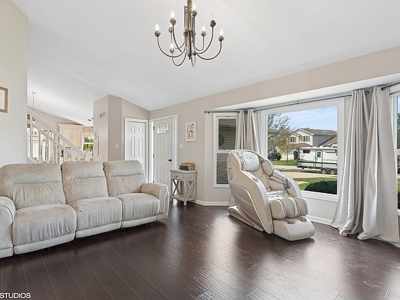 Beautiful and stunning 4 bedroom /2 bath Tri-level home with finished basement on the border of Joliet and Plainfield. Enter the main level and turn left to see the cozy living room with hardwood floors and fireplace, or step to the right and enter the gorgeous kitchen and dining room with soaring ceilings. The kitchen features beautiful cabinetry, generously-sized island and color-matched granite countertop. Next to the dining room, there are sliders that lead to a fully-fenced backyard where you can enjoy hot summer days under the ceiling fan in the large, tiled & covered patio area. Enjoy scenic summer swims in the large swimming pool, surrounded by beautiful landscaping and trees. The upper level has 3 good-sized bedrooms and a master bathroom with double vanity. The lower level has a spacious family room with hardwood floor, a big guest bedroom, and another full bathroom. Just a few steps down, there is a finished basement which can be used as your art/music/exercise room or whatever room you want; this is also the location of the laundry room with washer/dryer and HVAC unit. This house is located 5 mins from the newly-built YMCA building which is expected to open in Spring 2026. Also 15 mins from Costco and I-55, about 7 miles from the shopping mall with movie theaters and Barnes & Noble etc. This house is a must-see and won't last long. Don't miss out on this wonderful opportunity. Schedule a showing today!