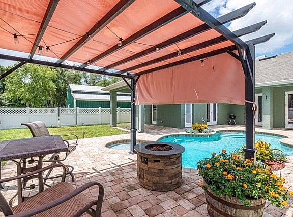 Odessa acreage on secluded dead end road. If privacy and nature is what you seek, this farm is going to impress you. Four bedroom custom built home features 10ft high ceilings, quality workmanship, and luxurious finishes such as a heated inground pool. This home includes a HOME WARRANTY! 1.65 acres of fenced and cross fenced land. Attached garage in addition to the large drive thru pole barn that has water, electric, partially air conditioned, insulated, wet bar, and lots of space to store boats, cars, and RV. Behind the pole barn is a large fire pit that calls family and friends together to make memories. The 3 stall horse barn has plenty of room for feed and tack storage in addition to a lean-to that has covered space for RV, horse trailer, or boat parking. There are automatic waterers in the stalls and covered area for cross ties and grooming. Don't let this dream home get away! Schedule a private showing before it's gone!