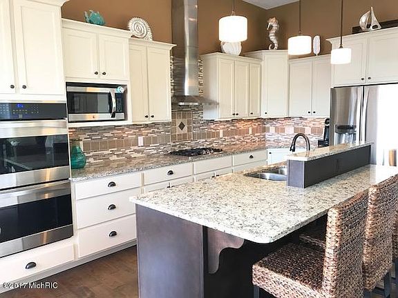 Homes in Byron Center like this do not come up often! Grab it while you can. This gorgeous 5 bedroom, 3 full bath, 2 half bath, 2013 built home on a double waterfront lot in the popular Providence Lake is in mint condition and ready for a new owner. Kitchen features granite tops, double wall oven, gas top range with 11ft ceiling, custom built cabinetry with slide out drawers, hardwood floors & huge butler pantry. Mudroom sports built in lockers, two closets, drop/charging station, and piano hinged storage bench. The living room offers an amazing three sided fireplace with a built in book shelf/entertainment center. Master bath has granite countertops, tile shower, glass euro door and walk in closet. Two more br, half and full bath with two sinks, and laundry by the bedrooms complete the main floor. The lower walk out level offers the heart of entertainment with the lake behind, a large living room, full wet bar, work out/game area, two additional bedrooms with full double vanity bath,