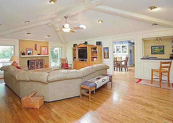 Spacious 5 bdrm with gleaming wd flrs & updated kitchen. Split bdrm arrangement with 3 bdrms (including master) in one wing. 2 bdrms in kitchen wing. 5th bdrm makes a great game room. Lovely landscaping with mature live oak trees. A bird watcher's paradise. All windows replaced. 2 dishwashers in kitchen. Updated master bath. Skylight plus solar tube.Wet bar with wine cooler. Gated Driveway. Garage plus carport and shed.