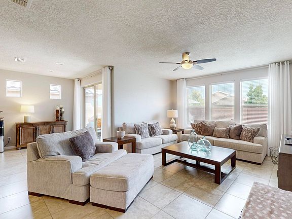 Welcome to this exceptionally priced 6-year-old Pulte home located in the desirable Lomas Encantadas community of Rio Rancho. This light and bright open floorplan offers 2,675 square feet of comfortable living space, featuring 4 bedrooms and 3 baths. The heart of the home is the beautifully designed kitchen, complete with granite countertops, a stylish tile backsplash and an abundance of cabinetry. A large pantry and a center island with a breakfast bar add to the kitchen's functionality. Stainless steel appliances, including a built-in gas stove/oven, microwave, refrigerator and cooktop, make this kitchen a chef's delight. The kitchen seamlessly flows into the great room, creating an ideal space for family gatherings and entertaining guests. The main level also features... See More