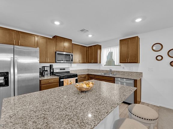 Welcome to this inviting two-story home with five bedrooms and a private in-ground pool. Downstairs offers a comfortable guest setup with a full bedroom and bath, ideal for visitors or multi-generational living. The kitchen features granite countertops, an island, and a pantry, flowing naturally into the dining area and family room with a cozy fireplace. Conveniently located near shops, grocery stores, schools, and restaurants, this home makes daily life easy. Upstairs you’ll find a spacious loft, three guest bedrooms, and the primary suite complete with a walk-in closet and ensuite bath. Step outside to enjoy a beautiful backyard with a heated pool and spa, perfect for relaxing on warm Vegas days or cool desert nights.