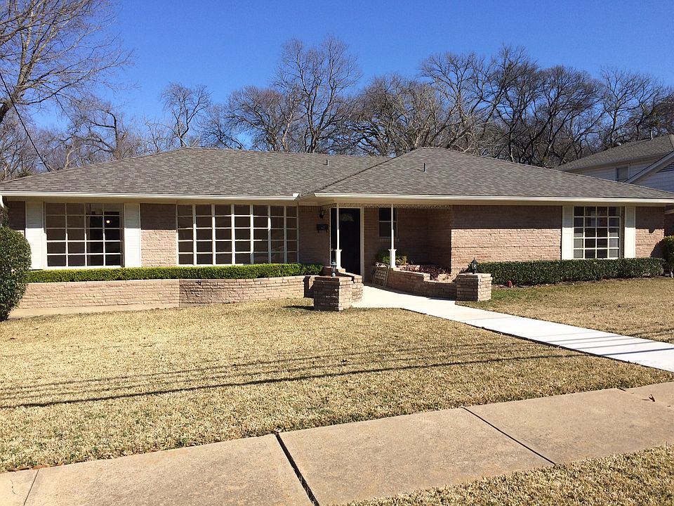 Experience this magnificent Mid-Century home in Merriman Park home situated on secluded lot with wooded views of White Rock Creek Trail. Natural light pours in from huge windows in front formals. Stylish kitchen boasts quartz counters, designer backsplash and sleek refaced cabinetry. Spacious den boasts floor-to-ceiling painted brick fp, delightful built-ins & wood floors. Master bdrm is sure to please with 2 closets, big picture window & vanity. Other bdrms connected by Jack & Jill bath w resurfaced tile counter, wall & shower. Large patio w gray stamped concrete overlooks grassy backyard. Refinished hardwoods, low-e windows, AC ('19), retaining wall, ample storage + more