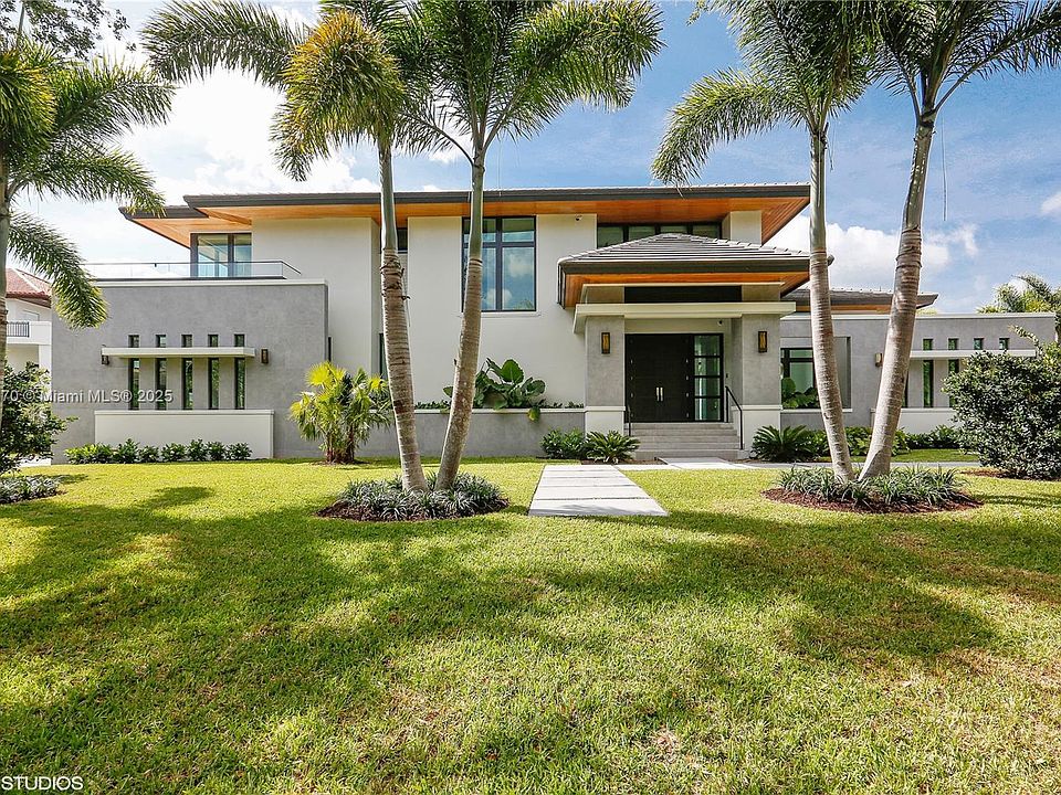 Built in 2019. Exceptional modern smart estate in the prestigious Islands of Cocoplum. This 6,851 SF home offers 6 bedrooms, 7.5 baths, plus a studio. Highlights include the master suite with a private balcony overlooking a custom pool and landscaping. Custom closets throughout. Designer Leicht/Hausscape kitchen featuring German craftsmanship, quartz countertop, and Sub-Zero/Wolf/Miele appliances. Impressive garage with 20' ceilings accommodates 4 vehicles with lifts and an EV charger. Enjoy an integrated Sonos sound system, CGI impact windows/doors, and smart automation systems controlling climate, lighting, and shades. Residents have access to the exclusive Cocoplum Club House amenities: fitness center, tennis, pickleball, volleyball courts, and community pool.