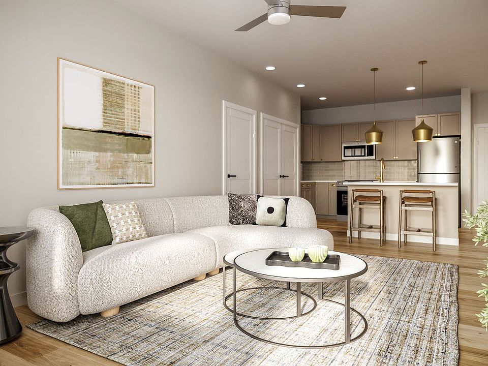 • Exterior features: 9'+ Ceilings, Co-Working Space, Coffee Bar, Kitchen Island, On-Site Maintenance, On-Site Management, Pet Washing Station, Quartz Countertops, Security Features, Stainless Steel Appliances, TV Lounge, Window Blinds/Shades