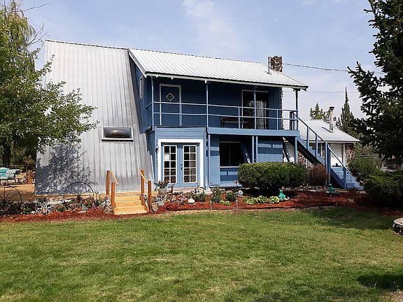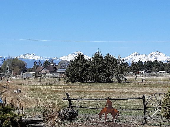 Nestled between Bend and Redmond, this charming A- frame home offers tranquil country lifestyle with breathtaking mountain views. Set on 8.87 acres, the property features a 2-bedroom, 1-bathroom home with 1,668 sqft of living space. Vaulted ceilings and expansive windows flood the house with natural light, framing picturesque views of a pond, stream and the surrounding mountains. Enjoy the peace and privacy of country living while being just a short drive to urban amenities.