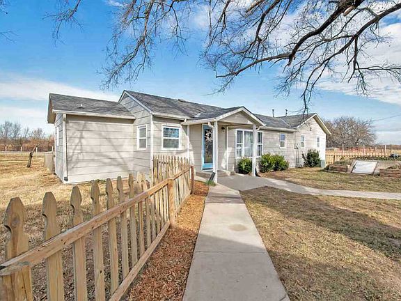 Newly painted, new carpet 3 Bedroom 1 1/2 Bath in main house. Barn, Shed and 1 car garage. All fenced. Nice trees. Separate Utility Room. Storm Shelter. Easy access to turnpike (-20 minutes to Downtown Wichita). Separate guest quarters 1 Bedroom/1 Bath, laundry, Kitchen and Living Room. Ideal for home based business. Rural Water District # 5