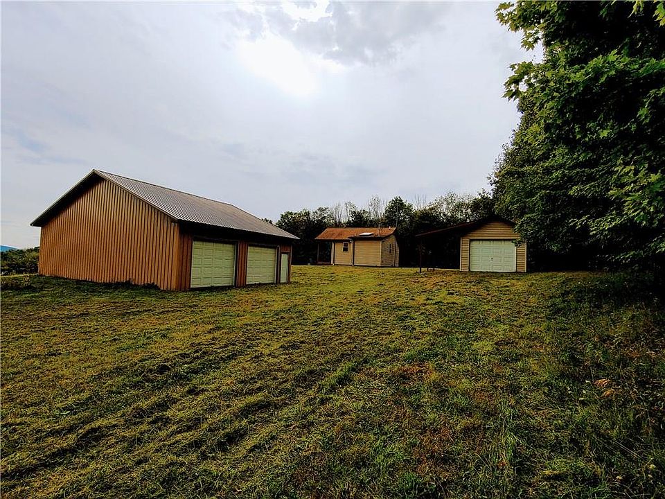 Enjoy this scenic 10 acre property with cabin, detached garage, and 30x40 pole barn (built in 2017) for storing your equipment. Cabin is equipped to live completely off the grid with wind powered generator system and on site propane tank. Energy is stored to power furnace, electricity, and well pump. Beautiful knotty pine adds to the charm of this picturesque setting. Short drive to Canandaigua Lake, Keuka Lake, and Naples. This unique property can be yours!