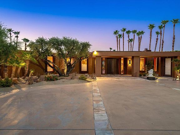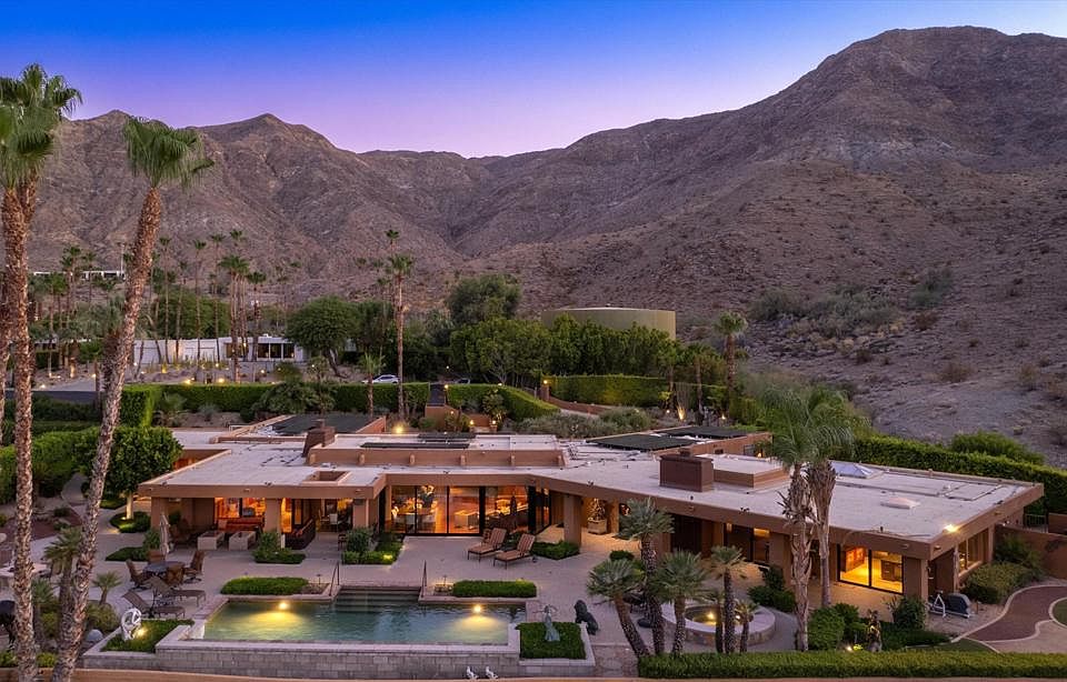 Introducing this exceptional late mid-century modern estate set near the very top of prestigious guard-gated Thunderbird Heights--one of the community's highest view homes. This rare mountainside property offers tremendous privacy and sweeping panoramas from nearly every room.The massive Great Room features warm hardwood floors, light wood ceilings, expansive windows, a fireplace, surround sound, and a sit-down wet bar. Outdoors, the setting is equally compelling--featuring a private putting green, large pool and spa, fire pit, expansive covered patios, and a built-in BBQ--all oriented to maximize outstanding city-light and mountain views. Bighorn sheep are often seen on the nearby mountainside, enhancing the natural surroundings.Multiple dining options flow from the Great Room to the outdoor patios, offering effortless indoor-outdoor living. A formal dining room is available for those more traditional or special occasions. The chef's kitchen includes top-tier appliances, an island, desk area, and excellent storage. A casual breakfast room--also ideal as a fitness space or easily converted into an additional bedroom--sits just off the kitchen.Bedrooms are thoughtfully positioned in three separate wings for privacy, including a suite well-suited for a live-in caretaker. The primary suite is a private retreat with a fireplace, lounge area, two custom walk-in closets, and two separate bathrooms. An adjacent office captures remarkable sightlines of the mountains. A fourth bedroom is currently a media room but may be converted back as needed.Additional highlights include a fully landscaped setting, private gated driveway, swivel TV, 3-car garage with AC, surround sound, and solar. A rare opportunity offering exceptional elevation, serenity, and true desert privacy.