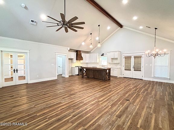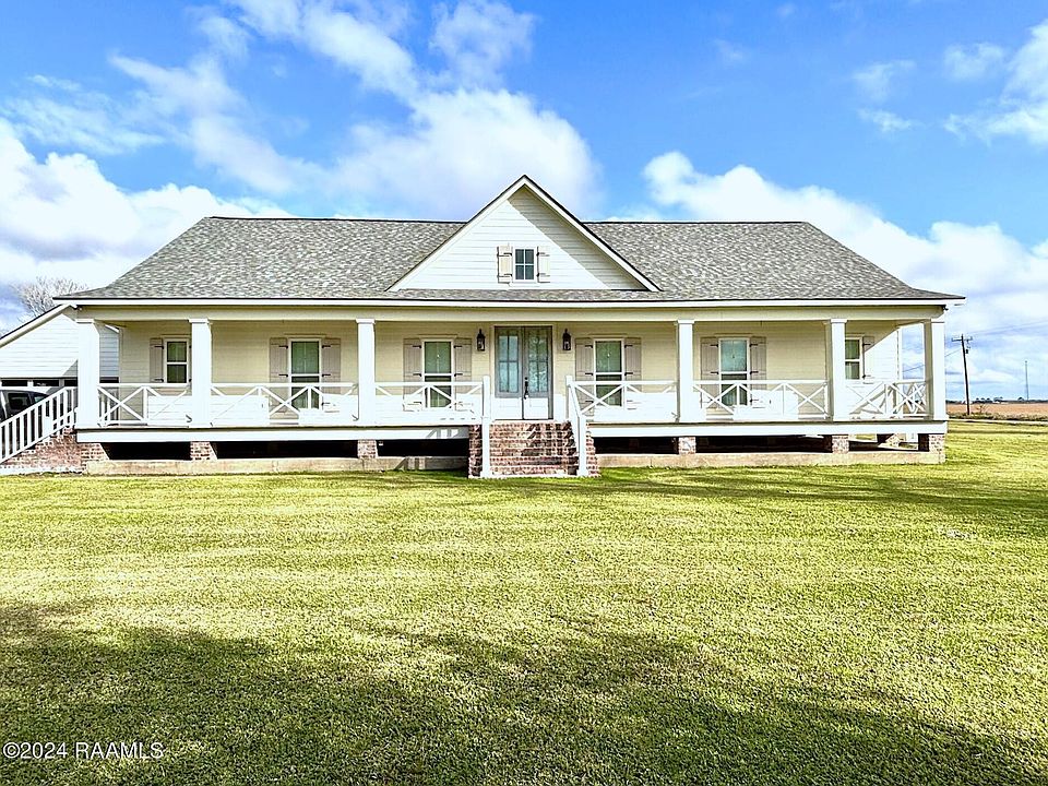 Welcome to Your Dream Home! Nestled on 4 picturesque acres dotted with majestic oak trees, located just 4 miles south of Crowley, this modern farmhouse features all of the amenities you love, plus an amazing outdoor kitchen. The heart of this home is an open kitchen, dining, and living area, crowned with a stunning cathedral ceiling that enhances the sense of space and light. Featuring a custom-built cypress island, granite countertops, a gas stove, and a generous pantry, the kitchen is both functional and stylish. This spacious retreat includes a luxurious en-suite bathroom with a stand-alone tub, a walk-in shower with multiple shower heads, and a large walk-in closet equipped with a built-in shoe rack. One of the two additional bedrooms features another large walk-in closet, offering ample storage. Packed with cabinets, counters, a sink, and space for an extra freezer or fridge, the utility room is designed for convenience. The highlight of the outdoor space is an incredible screened-in patio with an outdoor kitchen, featuring a corner brick fireplace and cypress cabinets in the cooking area. It's the perfect spot for entertaining or enjoying a quiet evening. The versatile double garage offers access from both the front and back sides, enhancing functionality. Once used as a hair salon, an extra building on site has a separate driveway, includes a full kitchen and full bathroom with a shower. Attached to it, is a large garage that has been utilized as a workshop. Additionally, the property is equipped with a 2021 CUMMINS ONAN whole home 20KW GENERATOR, ensuring you are never without power. This property boasts a serene pond with a built-in drain to prevent overflow. This property is a must-see to truly appreciate the peace, tranquility, and exceptional custom designs it offers. Schedule your visit today and experience the serene lifestyle awaiting you in this beautiful home!