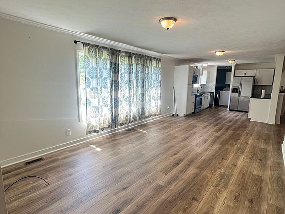 Open concept with spacious kitchen that holds lots of cabinet space and stainless steel appliances. Carpeted bedrooms with good closet space.