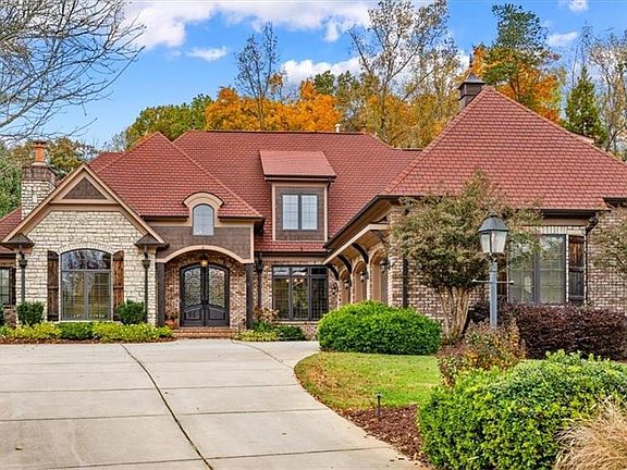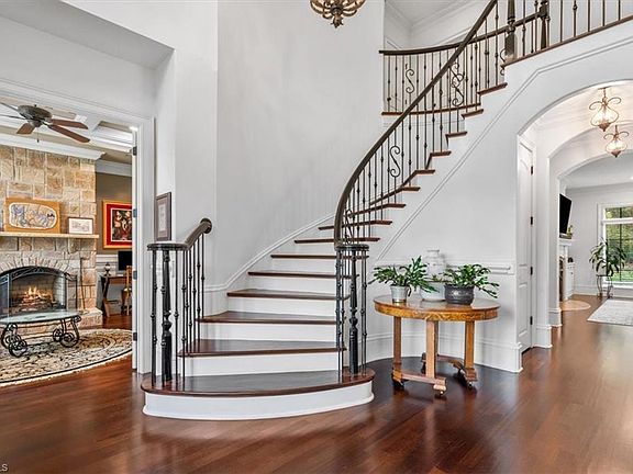 European inspired, elegant, timeless. With over 5600sq ft., this custom built home is the definition of style, beauty & sophistication. As you step through the front doors into the grand foyer with spiral staircase, you immediately notice the details that set this home apart. The Brazilian Cherry hardwood floors, stone fireplace (1 of 3) arched doorways, coffered ceilings & extensive moldings are just a few that grab your attention. Turn the corner to find the showstopper kitchen featuring a gorgeous waterfall edge quartz counter, island w/prep sink, gas cooktop, built-in refrigerator, oven & oversized pantry. The main level primary suite is a true owners retreat featuring a fireplace, sitting area, a 5 piece en-suite bath, large walk-in closet, wet bar, laundry & connects to an office/den. A screen porch, outdoor patio w/grill, sink & bar area, landscape lighting & fenced backyard make this home perfect for relaxing or entertaining. 3 car garage w/Tesla charging station. A must see!