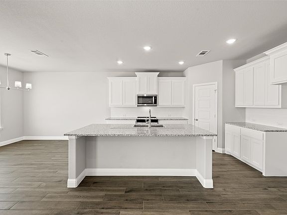 Warm wood-burning fireplaceInviting family roomSpacious islandVaulted ceilingsSide-entry garageOpen-concept layout