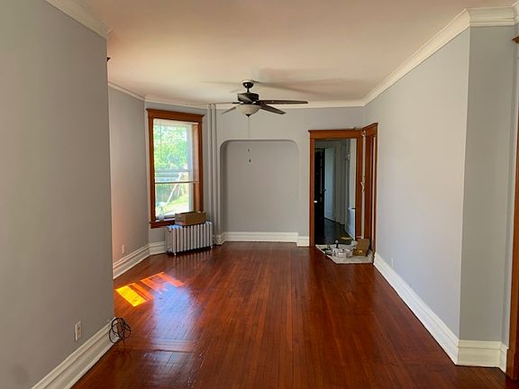 This charming Grey Stone offers a newly renovated 3 bed/1bath apartment, sitting on a fenced in double lot with a huge shared yard. Each bedroom has an attached closet and ceiling fan. The kitchen has new appliances and fixtures, as well as a walk in pantry. The original wood trimmings and flooring have been restored and enhanced bringing renewed life back to the unit while giving it a traditional/modern feel and flow. The building faces East/West, which provides consistent natural light. The South side if the building faces the fenced in yard and flower bed/garden. Located 2 miles from the University of Chicago and 2.1 miles from Jackson Park Golf Course and Lake Michigan, this apartment provides a bit more space and privacy from other rentals in the same zip code while still being conveniently located to areas of interest. I-90 is less than 0.5 miles away which makes commuting to South Loop/Chinatown a 12-15 minute drive with no traffic. The building itself is on a quiet, tree lined street full of younger families and older couples. There is ample free street parking, but garage space is available to rent monthly. Cats are allowed with a pet fee. No smoking is allowed in the building.
