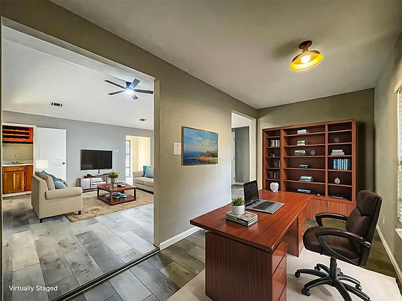 Welcome to this beautifully remodeled pool home featuring 3 bedrooms and 2 full baths, located in the heart of Watauga! Step inside and enjoy luxury vinyl plank flooring and fresh paint throughout. The kitchen and bathrooms are outfitted with brand-new, high-quality quartz countertops and all-new cabinetry, faucets, and light fixtures. The fully renovated bathrooms offer spa-like tiled showers for a modern, sleek look. The spacious living room features a stunning electric fireplace with elegant floor-to-ceiling tile. Just behind it, you'll find a versatile bonus room—perfect for a home office or formal dining area. Unwind in style at the wine bar with built-in sink, ideally situated next to the family room—a great spot to relax with your spouse in the evenings. The split-bedroom layout offers privacy, with two secondary bedrooms separate from the large primary suite. The primary bedroom boasts two generous walk-in closets and a beautifully updated ensuite bath. Each room includes a brand-new ceiling fan with light for comfort and energy efficiency. Step outside to your private backyard oasis: a large pool and spa, surrounded by a spacious wooden deck—perfect for family gatherings and summer fun. Bonus perks: No HOA—express your personality freely, even if it includes a life-size garden gnome collection! Located in a highly sought-after school district for top-tier education. Conveniently situated off Hwy 377, near Capp Smith Park and other Birdville ISD parks. Don’t miss out on this exceptional opportunity—schedule your tour today!