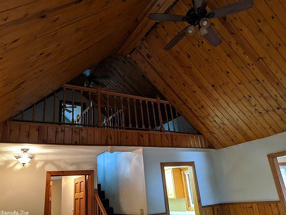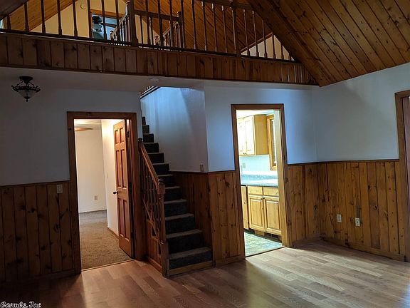 2008 1 owner home. 2 bdr, 3/4 & 1/2 bath, loft area & family room. Shop w/dbl doors, 576 sq ft with power; circle driveway, RV hookups. 2 lots (88&89) on 6+ acres, sits privately. Master suite incl walk in closet & private 1/2 bath with w/d. Laminate living room floor w/wood burning stove. Family room has laminate floors & opens onto back deck. Nice features like wood ceilings, wood doors & wood cabinets. Only 1 mile of gravel rd, 5 miles to downtown Hardy & closer to Spring River access! See Virtual tour.