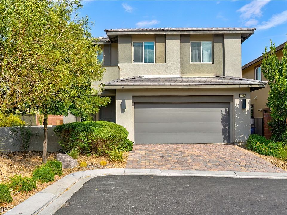 South Summerlin Former 6 year old model home in exclusive gated community has 3 bedrooms, 2.5 baths in an open floor plan. Corner lot with open space behind it, 180 degrees great mountain views, contemporary kitchen, rich java cabinets, quartz countertops & white subway backsplash accents. Stainless appliances, 5 burner gas range w/microwave above, large kitchen island w/ storage. Livingroom is spacious open to dining area. Covered patio has outdoor BBQ w/prep area. Professionally landscaped easy care fenced yard boasting mountain views. Huge Master bedroom with covered patio overlooking mountain views. Master bath is spacious, double vanity, large walk-in shower & walk in closet. Two additional bedrooms are ample sized, light & bright. Second upstairs bath has double vanity & lot of linen storage. Upgraded laundry room with sink, storage cabinet, washer & dryer. Double car garage has epoxy floor. Close to Bishop Gorman HS, Two Gradeschools, Minutes to Groceries, Shops and Restaurants.