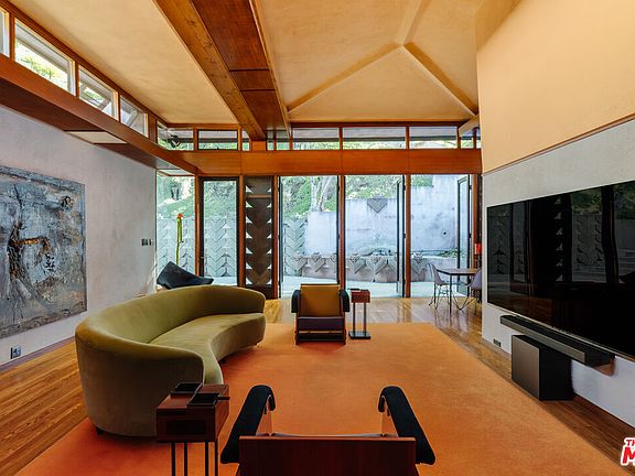 A once-in-a-lifetime opportunity to acquire the legendary David Lynch Compound: a private 2.3-acre hillside enclave that unites architectural pedigree, cultural history, and cinematic mythology in the heart of the Hollywood Hills. Anchoring the estate is the Beverly Johnson House, designed in 1963 by Lloyd Wright, son of Frank Lloyd Wright. Recognized by Historic Places LA as an "excellent example of Mid-Century Modern/Organic residential architecture," the house embodies the drama of hillside modernism with bold geometry, walls of glass, and a seamless flow between indoors and out. Over the years, Lynch expanded the property into a true compound by acquiring the two neighboring residences on Senalda Drive. At 7029 Senalda, he established the address for his production company, Asymmetrical Productions. At 7035 Senalda, he found cinematic inspiration in the home, later immortalized on screen as the Madison residence in Lost Highway (1997), which includes Lynch's private editing suite and screening room. Lynch commissioned Eric Lloyd Wright in 1991 to design a pool and pool house, extending the site's rare multi-generational Wright lineage. The director also collaborated on the creation of additional structures on the property, including a two-story guest house and another unique one-bedroom living space finished in his favored smooth grey plaster. Together, the three residences and ancillary structures form a cohesive, secluded compound of 5 contiguous parcels. A creative sanctuary and architectural landmark offered with a provenance unlike any other in Los Angeles.