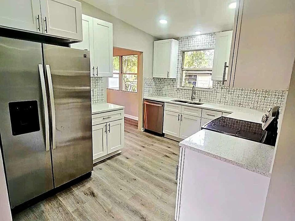 Enjoy cooking and entertaining in the gorgeous updated kitchen, complete with quartz countertops, brand-new cabinetry, and stainless steel appliances. A brand new roof and durable vinyl flooring flows seamlessly through the home.