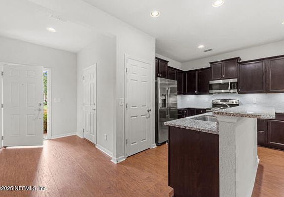 ONLY END UNIT FOR SALE IN THE COMMUNITY! Private Gated Neighborhood!! Remodeled! Enjoy the best of Bartram living in Bayberry; a private gated neighborhood celebrated for its convenient location, wonderful amenities, and beautifully maintained surroundings. This rare renovated, end-unit townhome offers 3 bedrooms, 2.5 baths, and a one-car garage. (ALL APPLIANCES INCLUDED IN SALE.) The main level features an open-concept layout with wood-look flooring, recessed lighting, and a bright living area that flows seamlessly to a screened patio. The updated kitchen showcases granite countertops, brand new backsplash, rich espresso cabinetry, stainless-steel appliances, and a large island with bar seating—perfect for entertaining. Upstairs, the private owner's suite includes a walk-in closet and a spa-like bath, while two additional bedrooms provide flexibility for guests or a home office. Schedule your tours today!