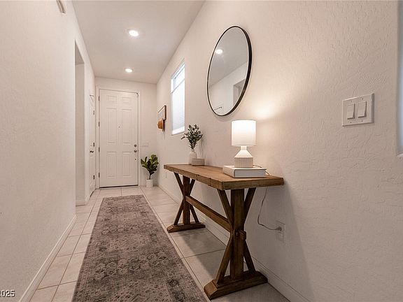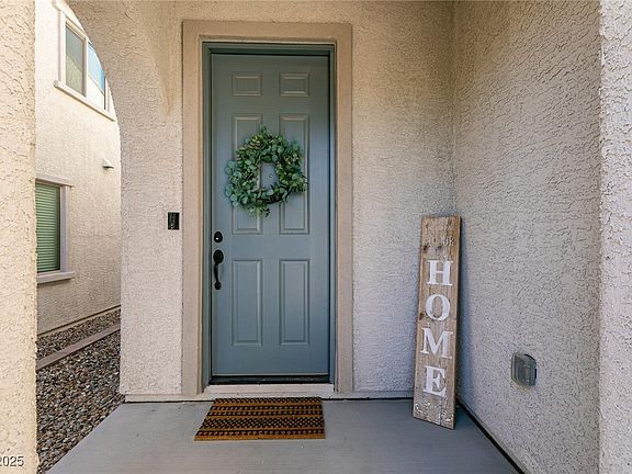Welcome home to this impeccably maintained & designed 2-story in the desirable Alder Vista community! Shows like a model with evey detail curated with high-end finishes. Built in 2022 by American West, this 3-bedroom, 3-bath home offers 2,103 sq. ft. of living space. The cozy great room w/tile flooring flows seamlessly into the dining area & stunning kitchen featuring custom cabinets, quartz counters, SS appls incl fridge, spacious walk-in pantry—perfect for meal prep & organization! Upstairs you’ll find a relaxing primary suite w/ceiling fan, walk-in closet & ensuite bath w/dual sinks & oversized walk-in shower. Generous loft for playing & lg laundry room w/washer & dryer included. Step outside to a deep, beautifully designed yard w/synthetic turf, covered patio w/lighting & generous space for enteraining, plus an unobstructed mountain view. Enjoy Alder Vista’s community park & access to shopping, restaurants, freeways, the VA hospital, and Nellis AFB—comfort and style await you here!