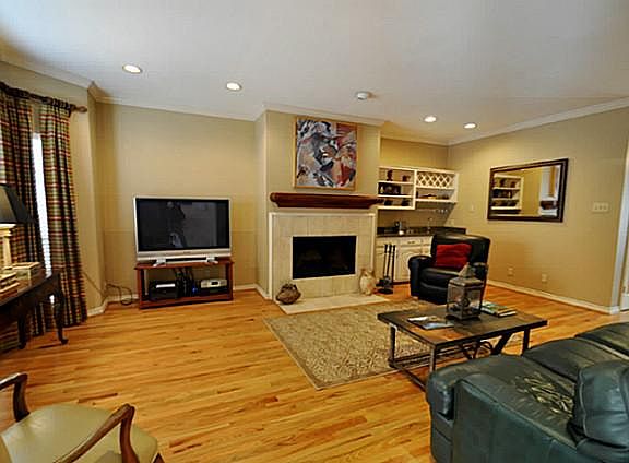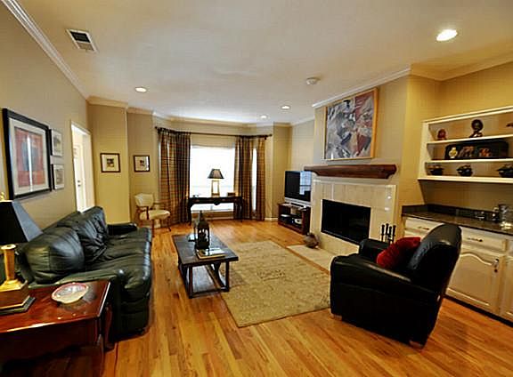 Absolutely pristine 2BR, 2.5Bth THome on only 2 levels! Extensive upgrades incl: hardwood flrs added, updated granite kitchen, fresh paint inside & out, travertine master bath with sep tub & shower, 2012 carpet upstairs, 2012 roof with 50-year transferable warranty, recessed lighting, crown molding & more. Features: 2 WBFPs with travertine & marble surrounds, granite wetbar & outdoor covered cabana & patio. Walk to Simon-David & Inwood Village!