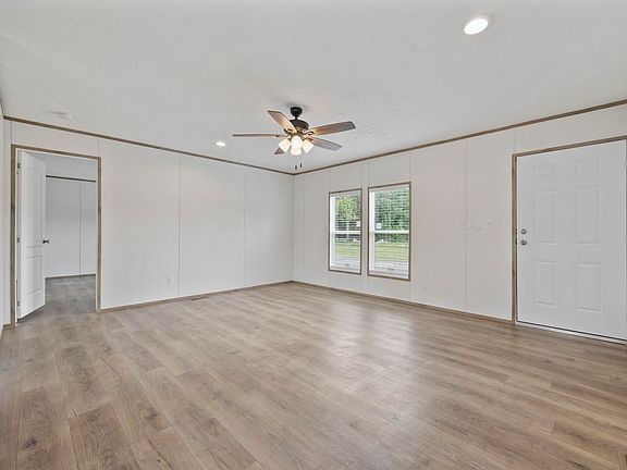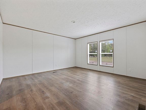 New doublewide mobile home on a rectangular cleared 2 acre lot with 212’ of road frontage with NO HOA in a nice area in Green Sea, SC. Home has a brick foundation and tie down straps to make conventional financing available. Large home with over 1600 sq ft of living space and a great open floor plan with neutral colors inside and out. Large primary bedroom and bathroom with double sinks, separate shower and tub, two living areas, large laundry room, window blinds throughout, and lots of natural light. Enjoy the space and peaceful living in this new home!
