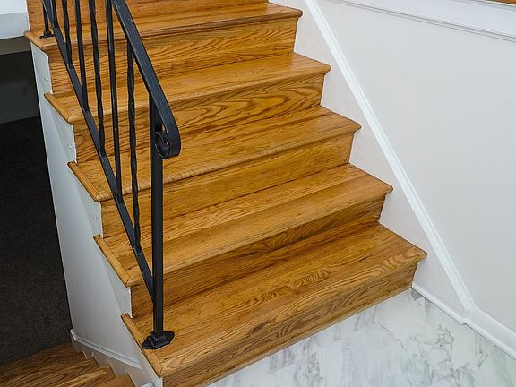 This beautiful traditional Split Foyer demonstrates impressive pride of ownership. The owners have devoted considerable effort to reimagine the space, resulting in a stunning home. Upon entering through the foyer and ascending a few stairs, you’ll be welcomed by gorgeous hardwood oak floors that span the main level. The spacious living room boasts a large bay window, which floods the area with natural light, fostering a bright and cheerful atmosphere. Adjacent to the living room, the separate dining room offers a seamless transition into the kitchen, enhanced by a sliding door leading to the back patio and a peaceful backyard—ideal for entertaining after a long day or unwinding during a lovely fall afternoon. There's also ample space for adding a garage or sunroom if desired. The kitchen has been thoughtfully updated, showcasing brand-new appliances, stunning quartz countertops, a stylish backsplash, and elegant LVP flooring. With plenty of cabinet space, all your culinary essentials are easily accessible. The main level comprises three spacious bedrooms, each featuring generous closet space and upgraded windows at the back and sides. The main bedroom has a private, completely renovated bathroom with a beautiful shower, vanity, and chic ceramic tiles on the floor and in the shower. There's also a recently remodeled hallway bathroom with a tiled shower and a reglazed bathtub. In the lower level, a large family room awaits, along with a bedroom that includes ample closet space and new carpeting, complemented by handcrafted bookshelves that add a personal touch. A remodeled half bath offers additional convenience. You'll also find an updated washer and dryer, alongside space for storage or a work area. Situated on a quiet street, the property features a large, landscaped front yard that enhances curb appeal, along with a fenced backyard complete with a storage shed and mature oak trees that back onto a wooded area next to a large grassy space. Adding to the exceptional quality and value of this home, the roof was replaced in 2015, the furnace in 2012, the air conditioner in 2010, the water heater in 2021, the sump pump was replaced, and a drain trench was installed in the basement in 2016, the washer in 2023, and the dryer in 2016. This home offers a one-year home warranty to the new buyer and is sold “as is”. Home inspections are welcomed, but for the buyer’s information only. This remarkable home provides a perfect blend of comfort and style, inviting you to create cherished memories for years to come.